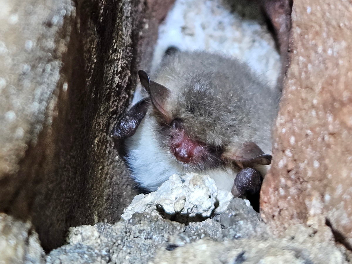 There were 15 Natterer’s, 2 lesser horseshoe 3 brown long-eared and one “mystery bat”. Deep in a crevice, all that could be seen was a patch of dark looking fur on a medium sized bat.