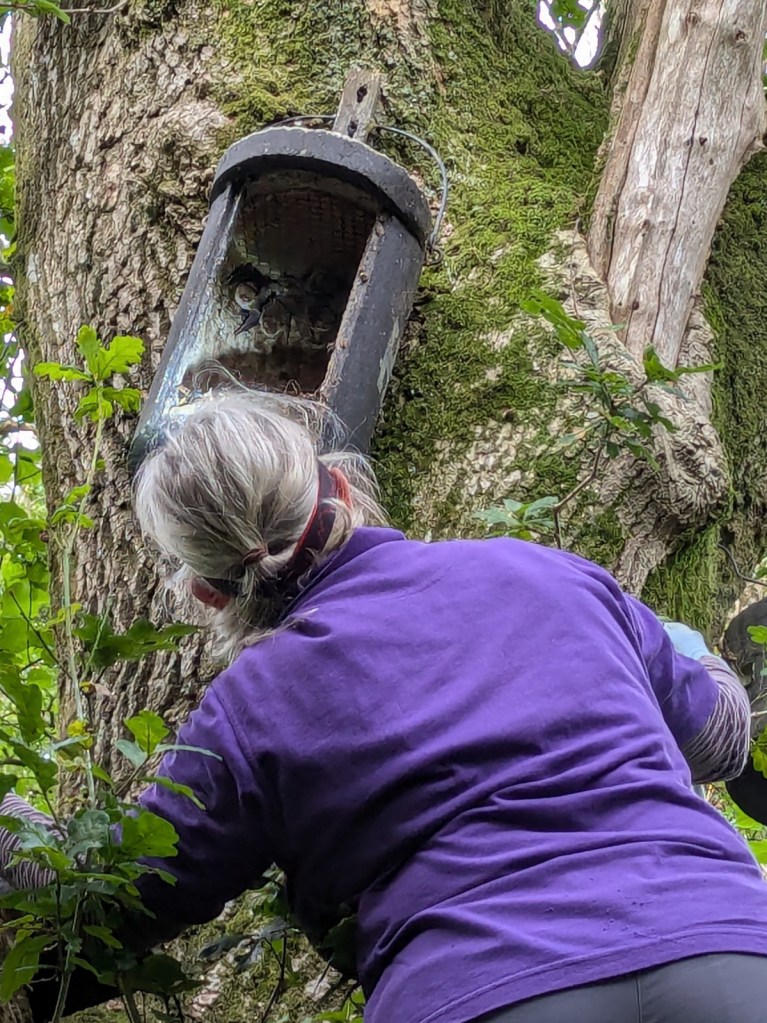 “Although we only had a handful of boxes to check we recorded one Soprano Pipistrelle mating roost in a box that was only installed recently, and many examples of ‘well-used’ boxes! Thanks to all for helping out!”